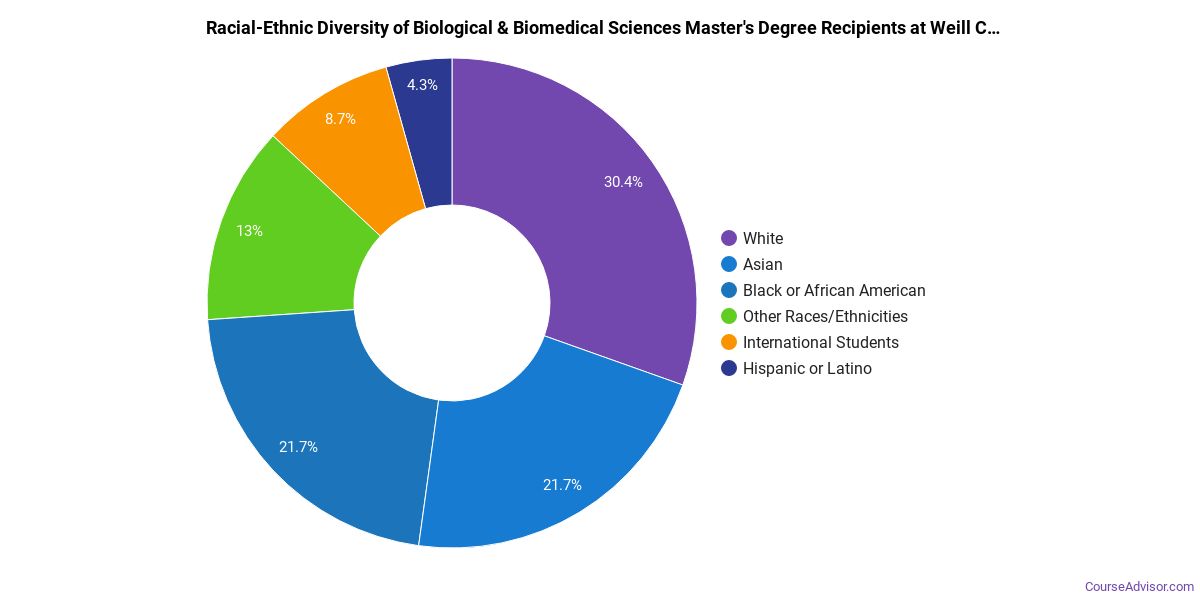 Take a look at the following statistics related to the make-up of the biological & biomedical sciences majors at Weill Cornell Medical College.