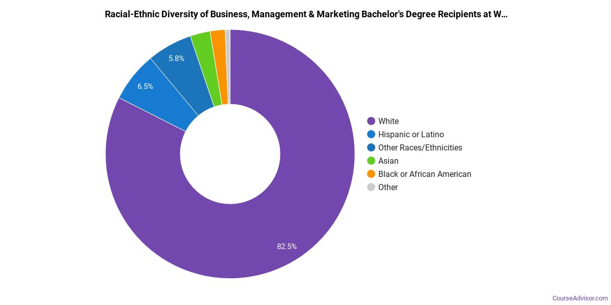 The following table and chart show the race/ethnicity for students who recently graduated from Western New England University with a bachelor's in business, management & marketing.