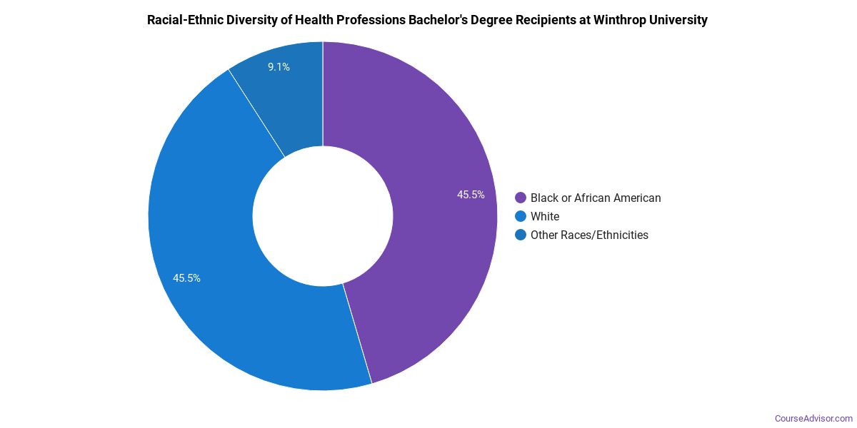 About 60% of those who receive a bachelor's degree in health professions at Winthrop are white. This is above average for this degree on the nationwide level.
