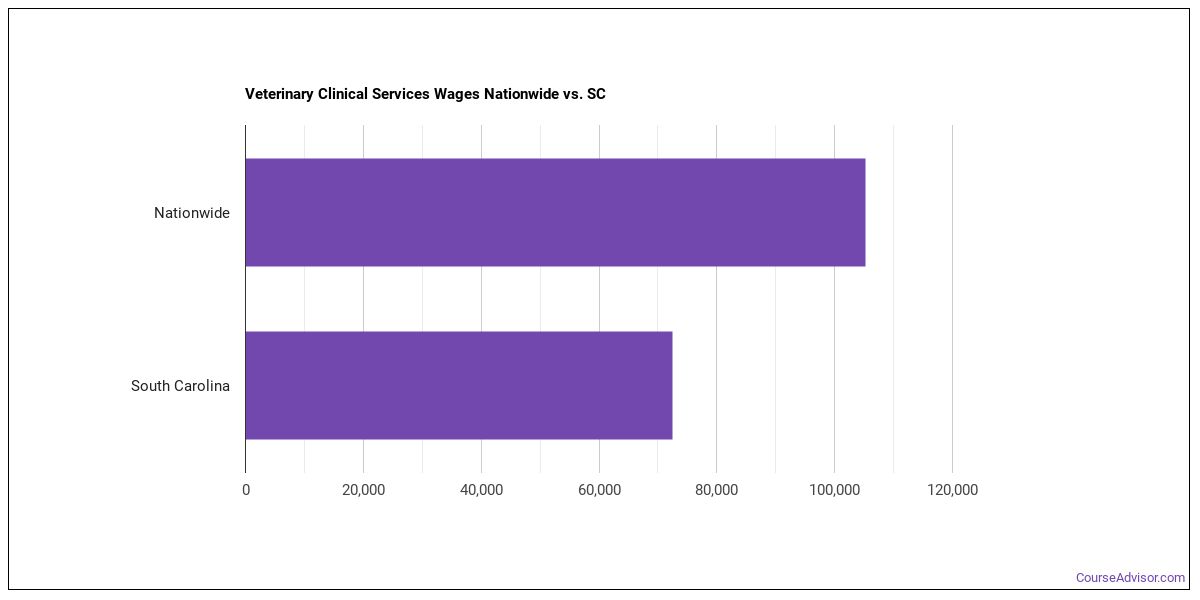 A typical salary for a veterinary clinical services grad in the state is $72,470, compared to a typical salary of $105,240 nationwide.