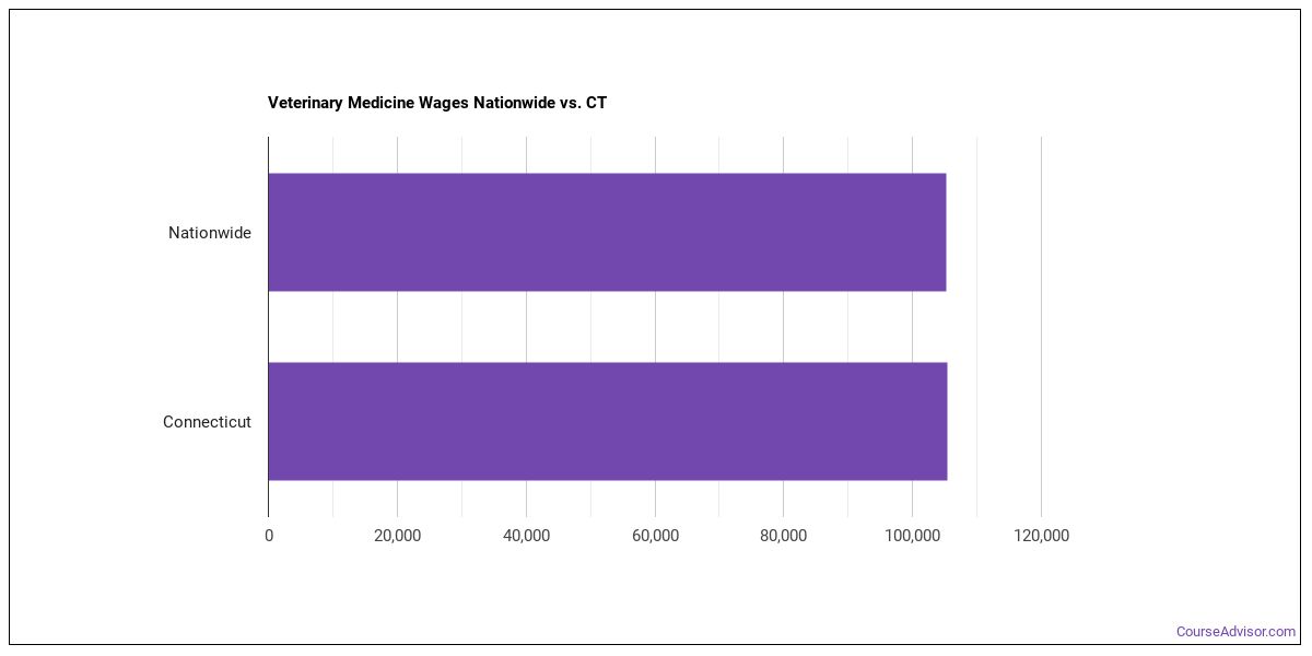 A typical salary for a veterinary medicine grad in the state is $105,380, compared to a typical salary of $105,240 nationwide.